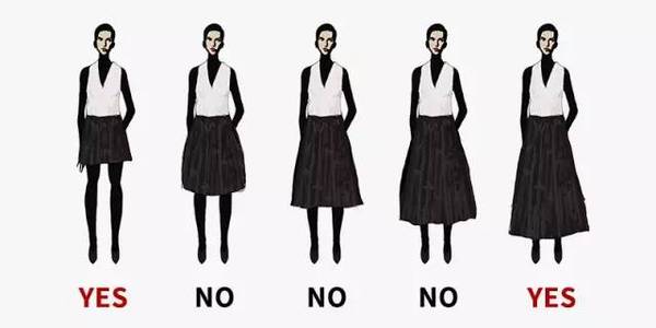 裙子裤子的长短也是影响身材比例的一大关键因素,裙子裤子长短的两个极端最显高,一是超长,不然就是超短。