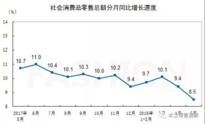 2018年5月份,中国零售业8.5%同比名义增长远低于市场预期的9.6%,同样跑输4月份的9.4%,而市场此前普遍对上月中国零售业反弹有较强预期。(以下除特殊说明外均为名义增长)
